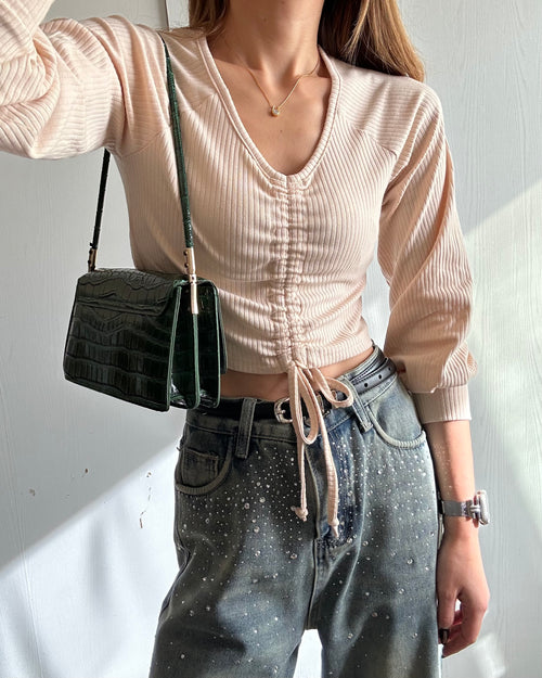 ワッフル配色ステッチルーズカットソー -